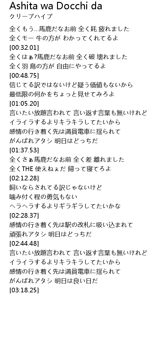Ashita Wa Docchi Da Lyrics Follow Lyrics